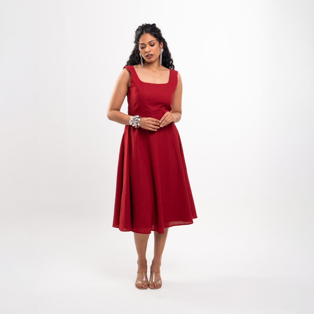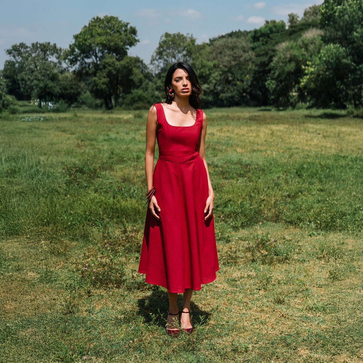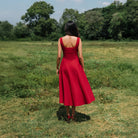 Soft, breathable khadi cotton lines every curve gently. A dress that feels light against the skin for days and evenings, that lets you move at your own pace. The deep maroon hue whispers of Parisian romance, while the fitted bodice and airy skirt create a shape that flatters without demanding attention. Crafted thoughtfully in small batches at an equal-opportunity manufacturing unit, the Paris Dress embodies timeless elegance, subtle confidence, and effortless charm, designed for moments that linger in memory.
