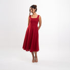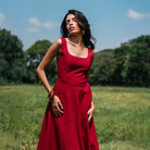 The Paris Dress is for the ones drawn to the candlelit streets, tranquil coffee corners, and the kind of evenings that linger in memory. Romantic in spirit, graceful in movement, and effortlessly charming, its square-neck midi silhouette balances structure with ease, flowing gracefully from sunlit strolls along the Seine to moonlit moments beneath the City of Lights.